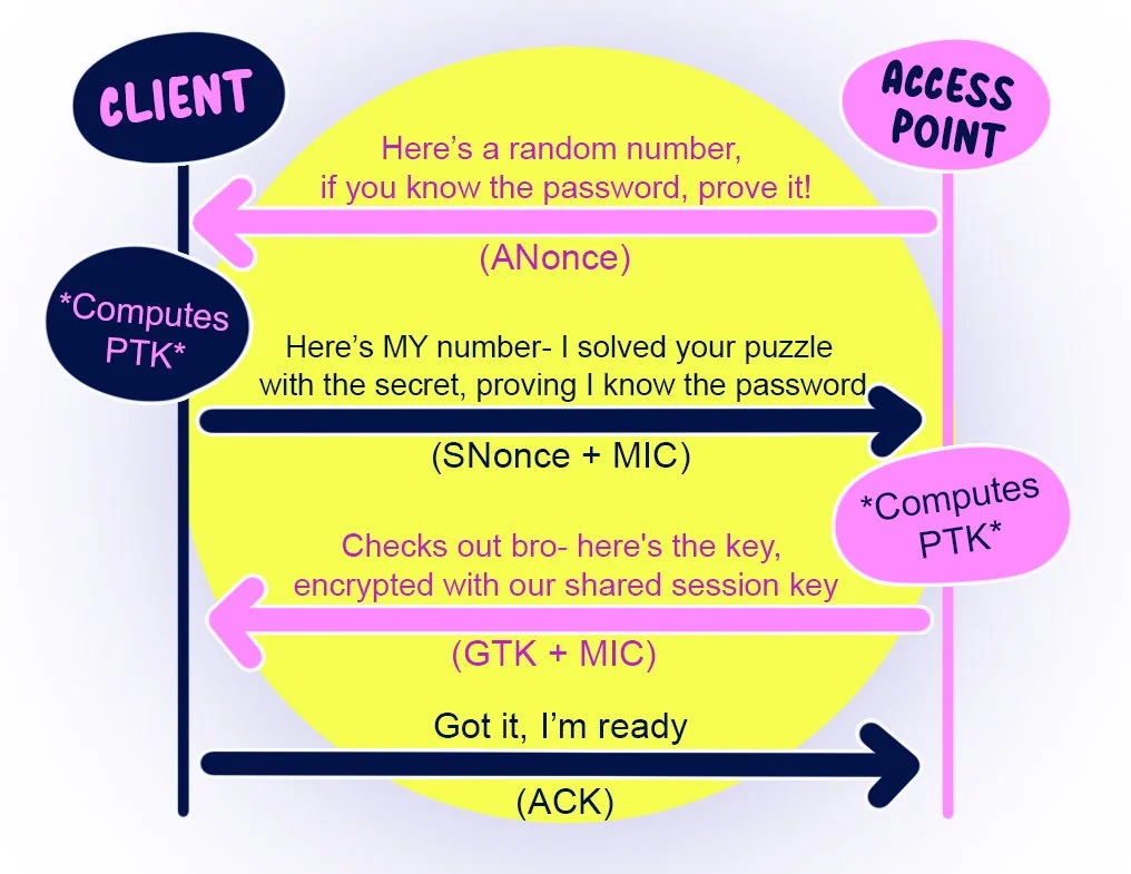 Hardware•Raspberry Pi Zero 2 W•Waveshare V4 e-ink display hat•Micro SD card (8gb+)•Micro USB cable (Data!)Optional:•Pi Sugar 3 battery•3D printed case Resources•https://github.com/jayofelony/pwnagotchi•Current Github repo•https://pwnagotchi.org•https://github.com/ZerBea/hcxtools•https://wigle.net 4-Way Handshake (EAPOL)